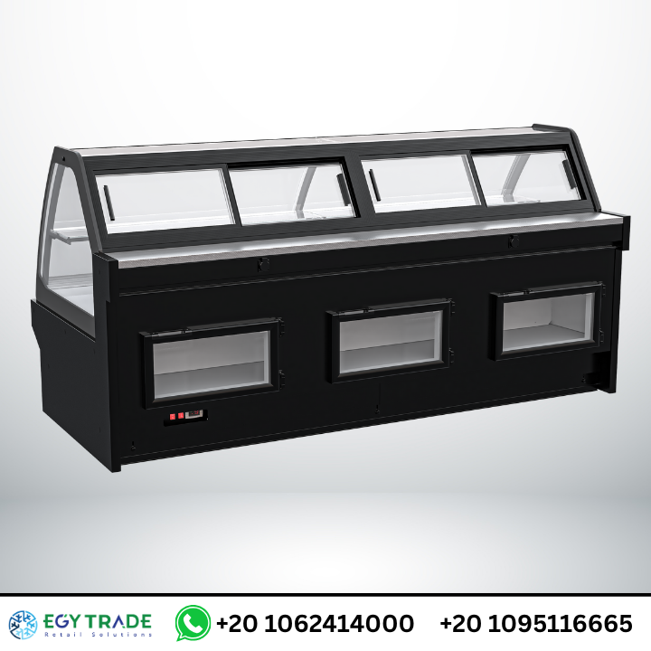 المنتج: ثلاجة عرض زجاجية منحنية مع فتحات أمامية (Curved Glass Display Chiller with Front Openings)