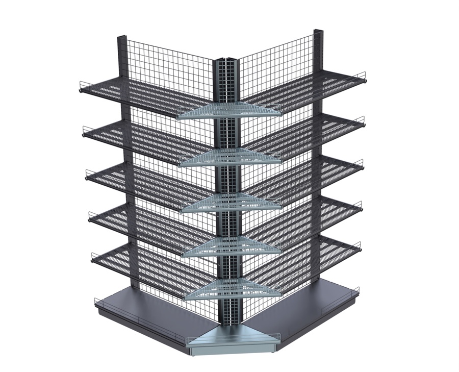 - الاستخدام التجاري: تُستخدم لربط صفَّين من أرفف الجندولة في الزوايا الخارجية للممرات داخل السوبرماركت أو الهايبرماركت، مما يخلق استمرارية في العرض ويزيد المساحة المتاحة للمنتجات.
