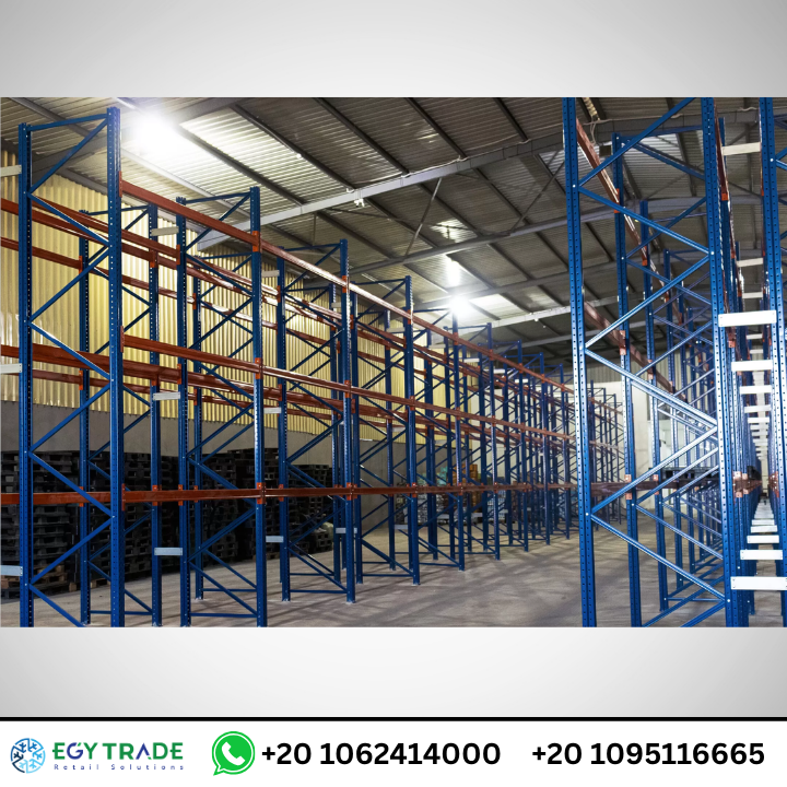 - صفوف طويلة ممتدة بطول المخزن مما يوفر سعة تخزينية كبيرة.