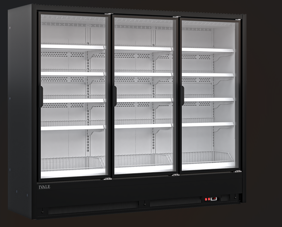 🧊 ثلاجة عرض رأسية بثلاث أبواب زجاجية – JVALE Foster Sofia 2