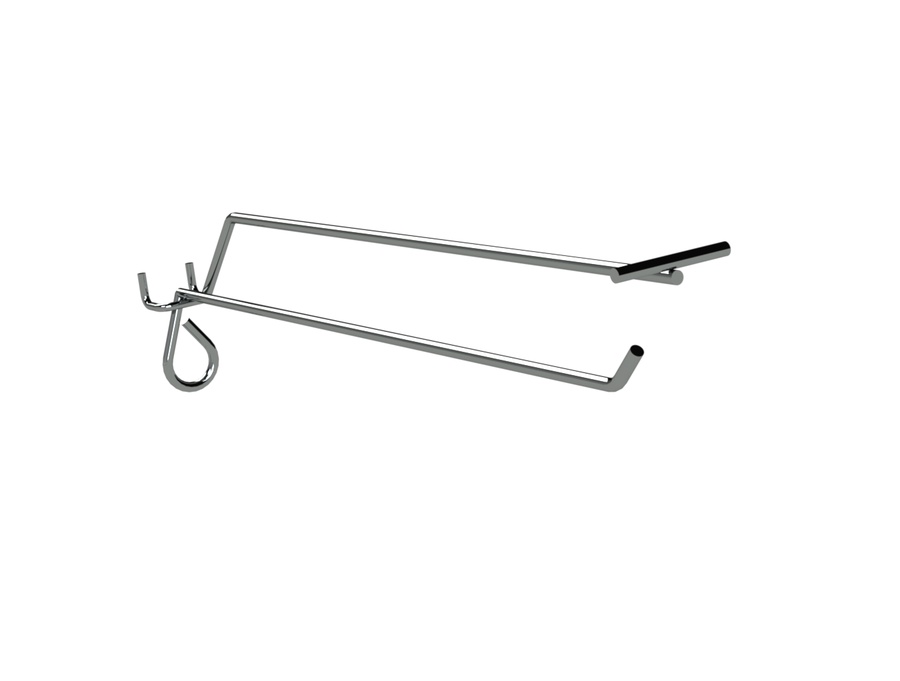- يُستخدم في أنظمة الأرفف المثقبة (Perforated Wall Units / Pegboards) لعرض المنتجات المعبّأة أو المعلقة مثل أدوات الحلاقة، البطاريات، فرش الأسنان، الإكسسوارات، والأدوات الصغيرة.