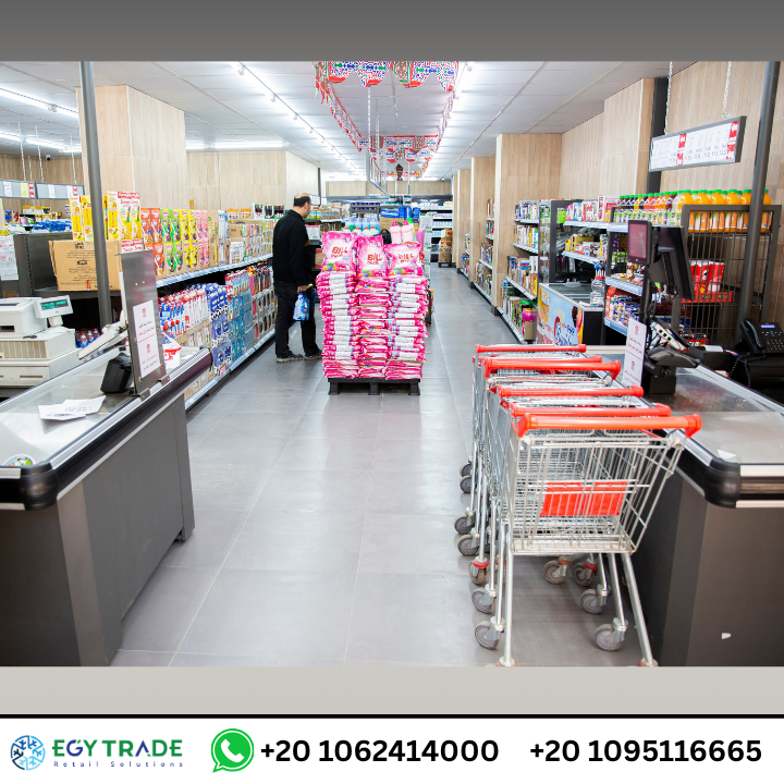 حل متكامل لتجهيزات السوبر ماركت يشمل ثلاجات عرض سوبر ماركت، ورفوف معدنية عالية الكفاءة، وتصميم بيع تجاري وفق معايير إيجي تريد. جاهز للتسليم.