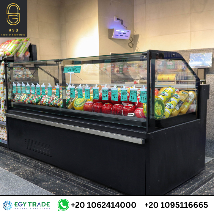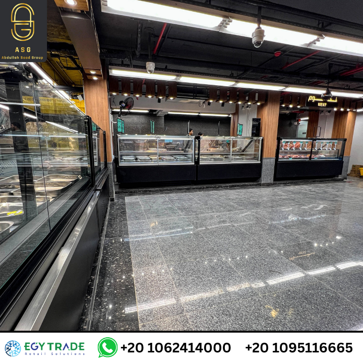 كما يضم المشروع ثلاجات عرض رأسية للمبردات ومنتجات الألبان، وثلاجات مجمدة بجودة تشغيل مناسبة للسوبر ماركت ذات الدورة التشغيلية العالية، مع مراعاة أنظمة استهلاك الطاقة الحديثة. تم تجهيز أقسام مثل: المنظفات – المواد الغذائية الجافة – المنتجات المعلبة – القهوة والشاي – المجمدات، كل قسم بتوزيع عرض يحقق أقصى وضوح للعميل وسرعة حركة داخل الممرات.
