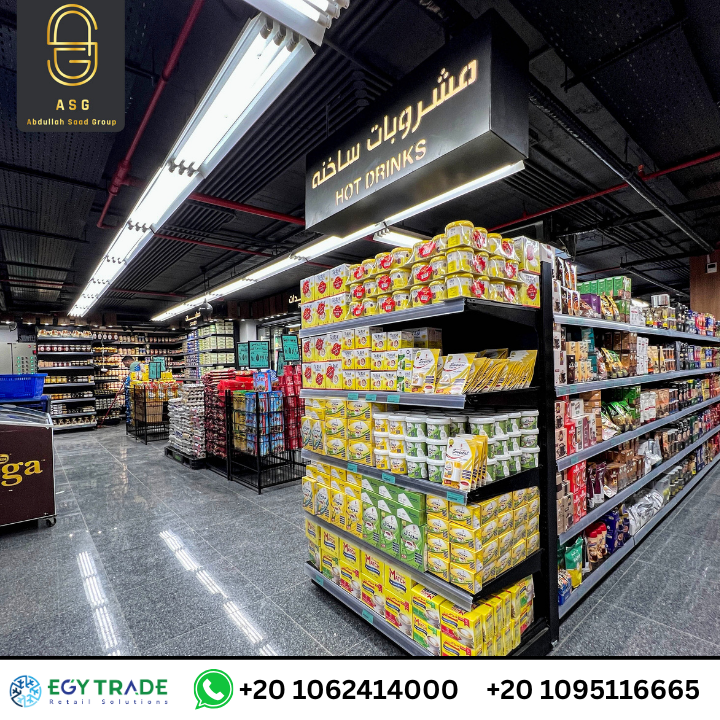 يمثل مشروع سوبر ماركت الصردي ماركت أحد نماذج التجهيز الاحترافية التي تقدمها إيجي تريد، حيث يجمع المتجر بين التصميم التجاري الحديث وكفاءة التشغيل العالية. يظهر في الصور استخدام تجهيزات سوبر ماركت متقدمة، تشمل رفوف معدنية قوية مطلية بنظام Electrostatic Coating لضمان التحمل طويل المدى، مع توزيع هندسي دقيق للجندولات يسمح بأفضل استغلال للمساحة.