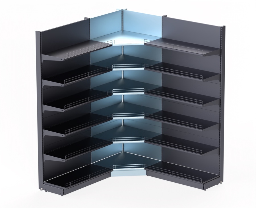 وحدات أرفف حائطي مصمتة بزاوية داخلية من شركة إيجي تريد لتجهيزات السوبر ماركت والهايبر ماركت، من أجود أنواع وحدات العرض والخامات المصنعة لأرفف السوبر ماركت، تعرف على مزيد من التفاصيل فيما يلي: