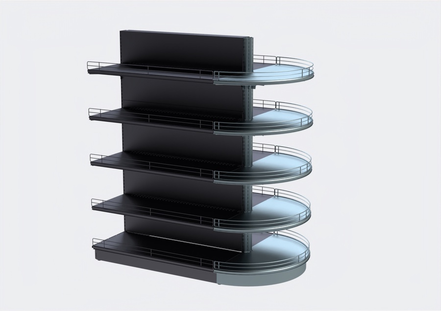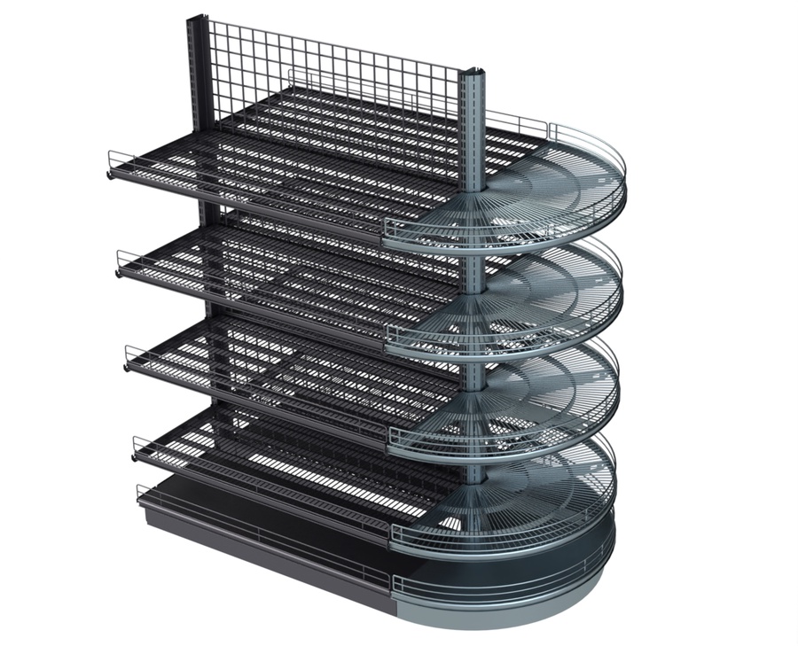 جزيرة عرض بوحدة قفلة نصف دائرية من شركة إيجي تريد لتجهيزات السوبر ماركت والهايبر ماركت