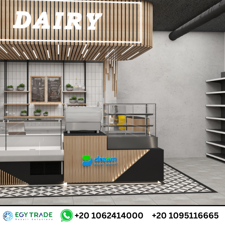 تجهيزات السوبر ماركت لمشروع Dream Market تشمل ثلاجات عرض سوبر ماركت رأسية وأفقية، ورفوف معدنية وخشبية احترافية، وحلول عرض متكاملة من إيجي تريد. جاهز للتسليم.