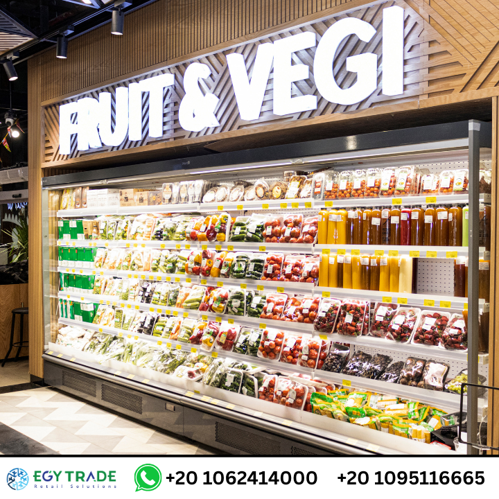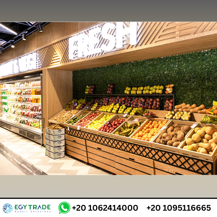 يقدم مشروع الفا ماركت الرحاب نموذجًا متميزًا ضمن مشروعات تجهيز السوبر ماركت من إيجي تريد من خلال تصميم شامل يعتمد على ثلاجات عرض رأسية ممتدة في أقسام الألبان والخضار المعبأ، مزودة بإضاءة داخلية قوية تعزز إبراز المنتجات وتحافظ على درجات التبريد بدقة. تعكس وحدات العرض الخشبية الخاصة بالخضار والفاكهة توازنًا بين الشكل العملي والهوية البصرية للمكان، حيث توزعت الوحدات على مستويات متعددة مدعمة بإطارات معدنية لضمان تحمل الأوزان وتقديم رؤية واضحة للمنتجات الطازجة.