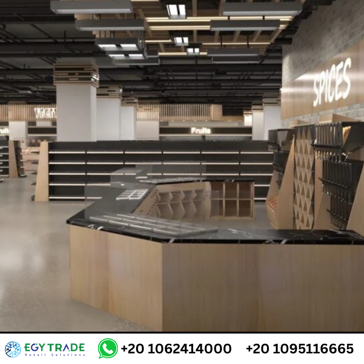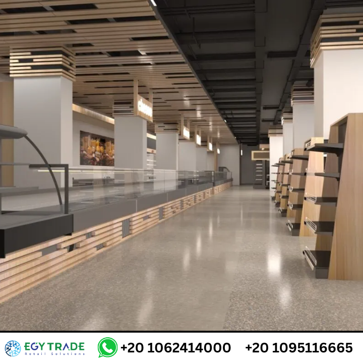 يمثل مشروع EGY DESIGN أحد النماذج المتقدمة في مجال تجهيزات السوبر ماركت، حيث يجمع بين التصميم العصري، والألوان الطبيعية مثل الخشب والحجر، وتوزيع هندسي يحقق تجربة تسوق جذابة للعملاء.