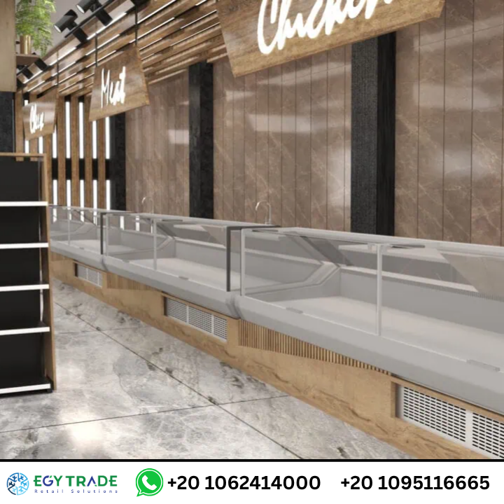تظهر في المشروع ثلاجات رأسية وثلاجات خدمة أمامية، خصوصًا ضمن أقسام Meat – Chicken – Cheese.