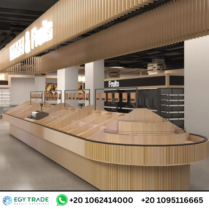 النتيجة هي تصميم تجاري راقٍ يرفع المبيعات ويقلل الهالك ويزيد من كفاءة التشغيل داخل المتجر.