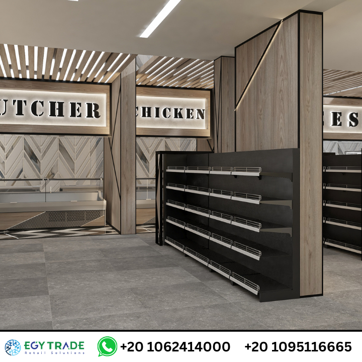 يقدّم مشروع Smouha Market نموذجًا متطورًا في تصميم وتجهيز السوبر ماركت، حيث يعتمد على هوية بصرية مميزة تجمع بين الخشب الداكن، الخطوط الهندسية، والإضاءة الموجهة.