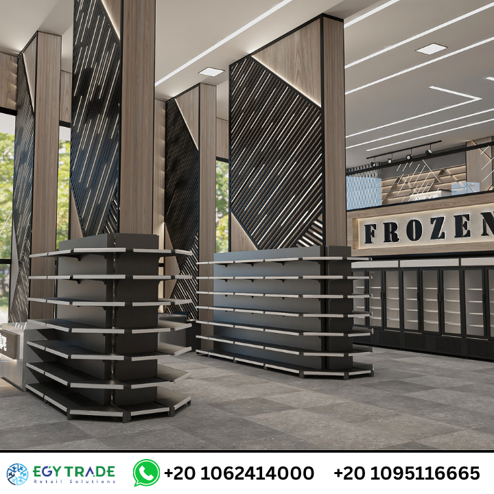 تحليل مشروع Smouha Market لتجهيزات السوبر ماركت يشمل رفوف معدنية وجندولات احترافية وثلاجات عرض سوبر ماركت ضمن تصميم متكامل جاهز للتسليم من إيجي تريد.